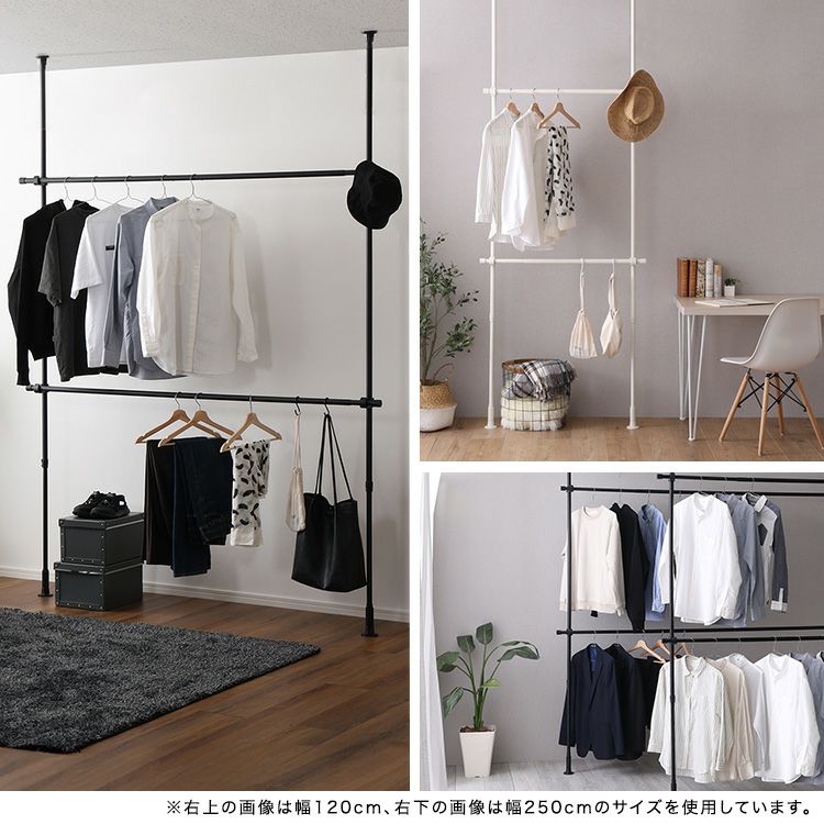 他の画像を見る つっぱり棒 突っ張 突っ張りラック スリム 天井 壁 壁面 壁面収納 高さ調整フック ハンガーラック ポールハンガー 突っ張り棒 省スペース おしゃれ 北欧 隙間収納 棚 収納 つっぱりハンガーラック 2段 幅120cm [SH-29-TTHS-2] ¥ 9,490 税込 お気に入りに登録する
