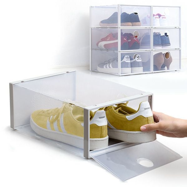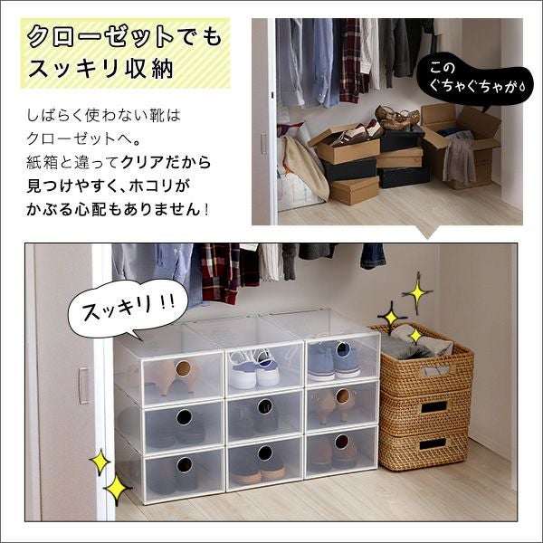 他の画像を見る 在庫切れ 玄関収納 シューズケース シューズボックス 靴 下駄箱 積み重ね 硬質クリア素材 通気孔 湿気対策 前開き扉 コンパクトサイズ 6個セット Clarte-クラルテ- クリアシューズケース 6個 [CRT-6] IASI ¥ 4,980 税込 お気に入りに登録する