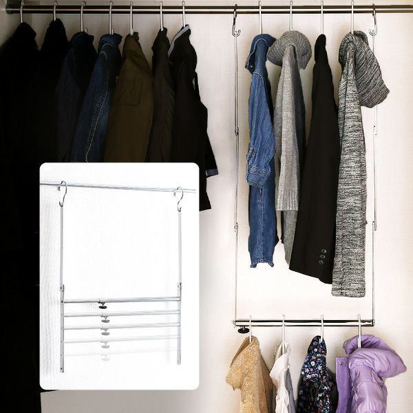 ブランコハンガー ハンガーラック 高さ11段階 無段階ワイド調整 クローゼット収納 かけるだけ 上下2段 吊り下げ収納 伸縮 キッズ 子供 ブランコハンガー[HT-SWH]