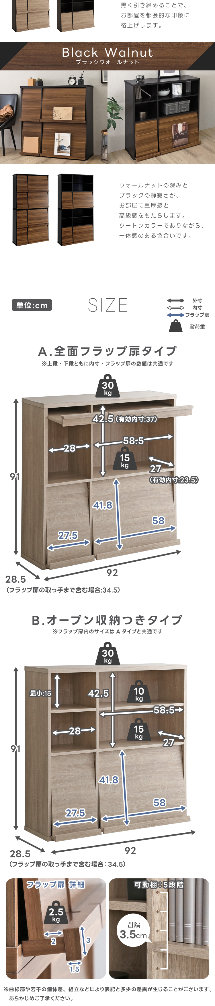 ■サイズ:幅 92cm×奥行 28.5cm(フラップ扉含む34.5cm)×高さ 91cm(1個あたり)