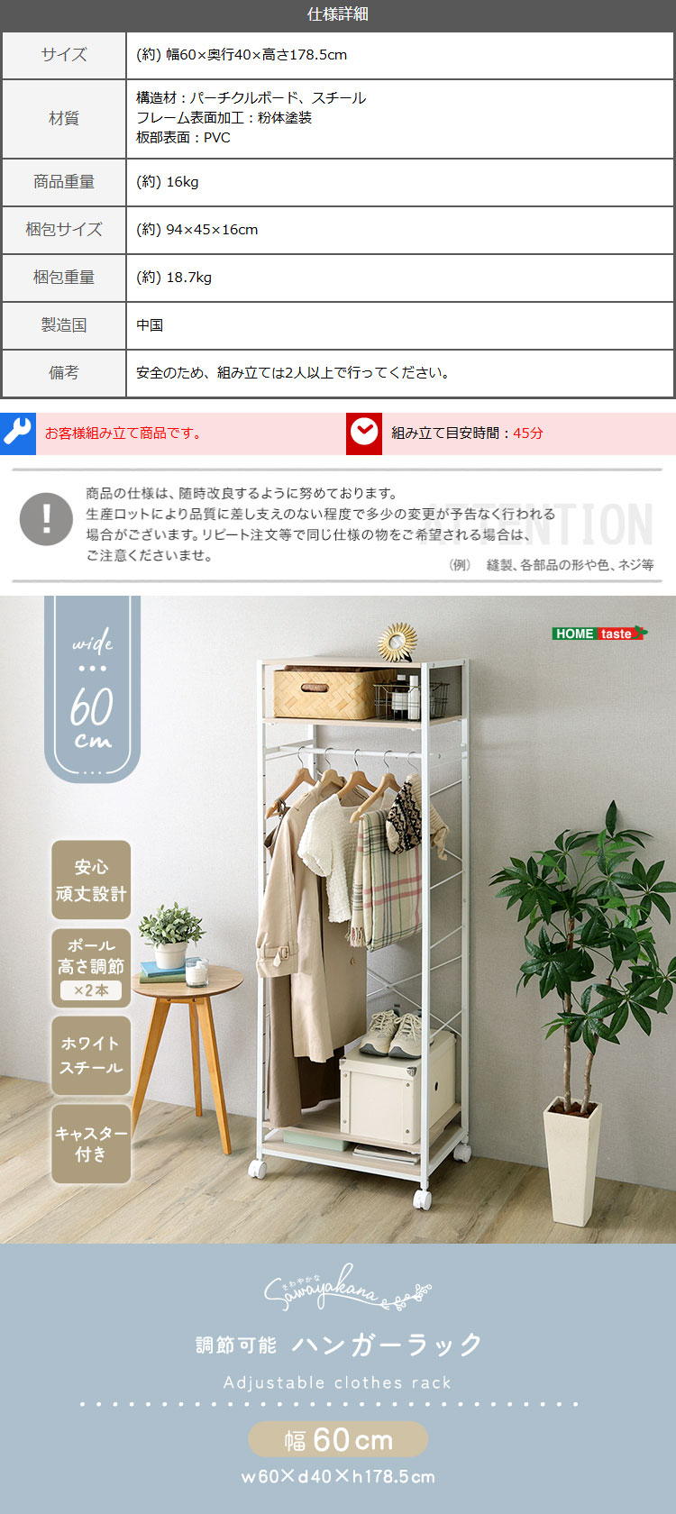 ハンガーポール:(約)10kg