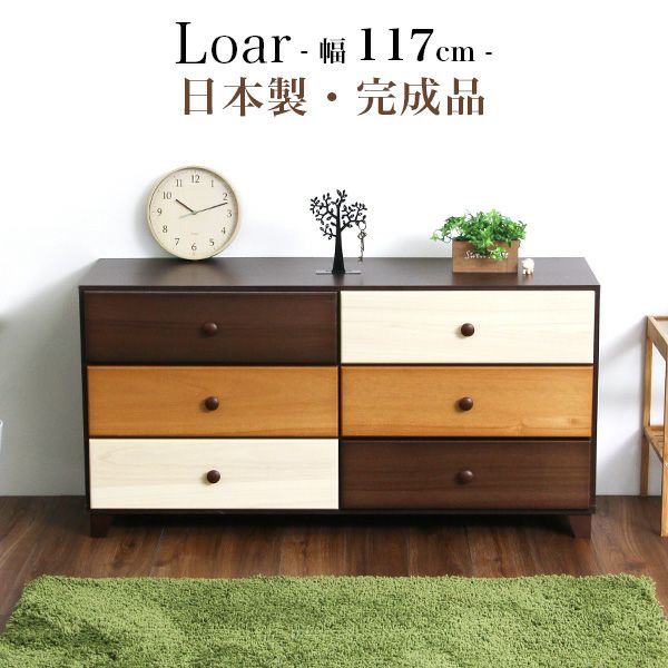 ブラウンを基調とした天然木ワイドチェスト 3段 幅117cm Loarシリーズ 日本製・完成品|Loar-ロア- type1