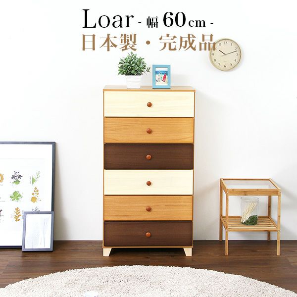 美しい木目の天然木ハイチェスト 6段 幅60cm Loarシリーズ 日本製・完成品|Loar-ロア- type2