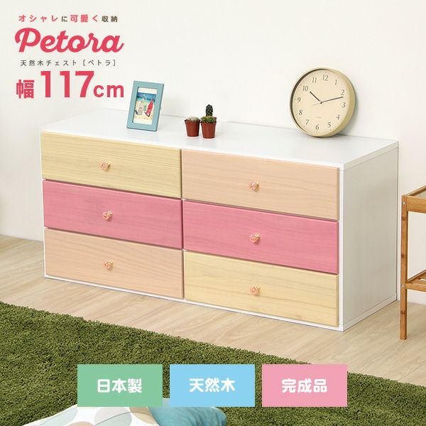 オシャレに可愛く収納 リビング用ワイドチェスト 3段 幅117cm 天然木(桐)日本製|petora-ペトラ-