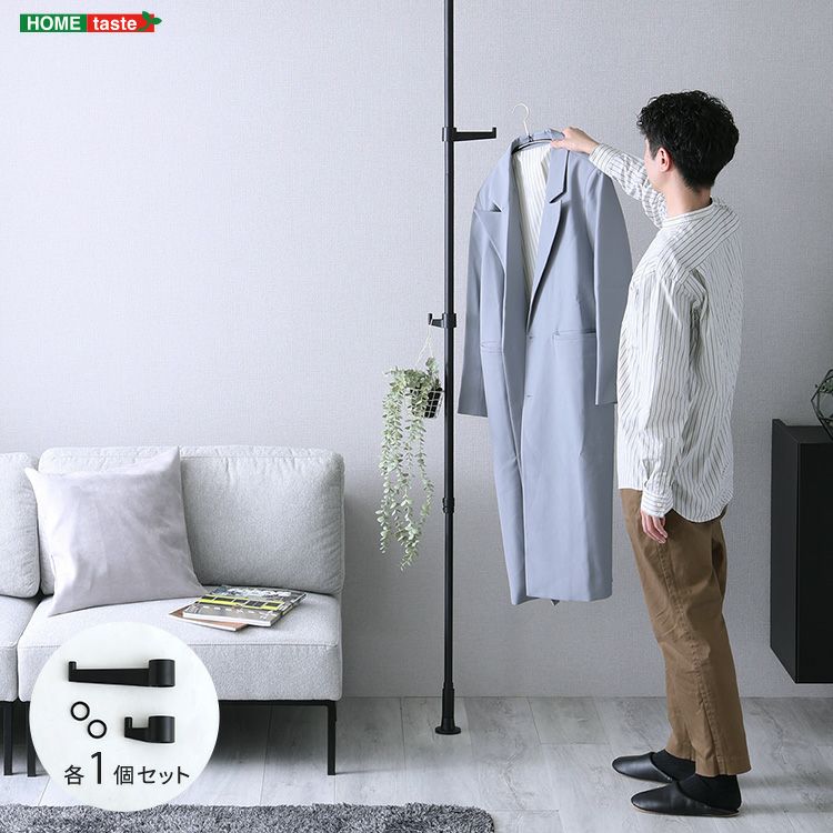 つっぱり棒 突っ張 突っ張りラック スリム 天井 高さ調整フック ハンガーラック ポールハンガー 突っ張り棒 フリーラック つっぱり ラック 伸縮 省スペース おしゃれ 隙間収納 棚 収納 つっぱりポールハンガー フック大小1個セット [SH-29-TTN1]