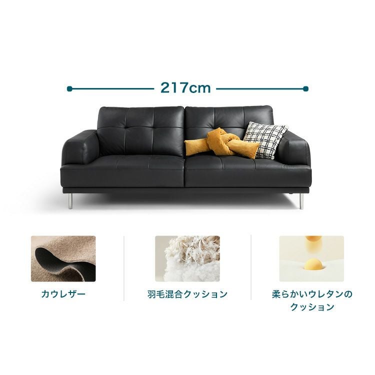 他の画像を見る 在庫切れ 3人掛けソファ 本革 カウレザー 羽毛クッション 耐久性 高級感 広々座面 リラックス設計 ブラック モダンデザイン 本革カウレザー3人掛けソファ [SH-LI-00426] ¥ 159,000 税込 お気に入りに登録する