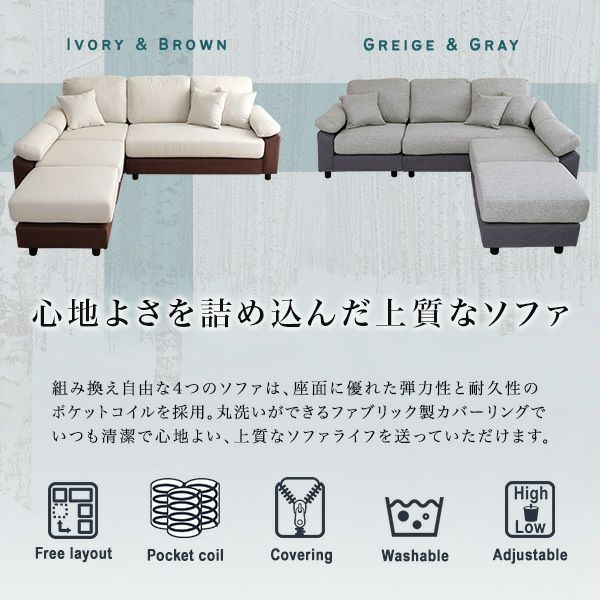 他の画像を見る ソファ カウチソファ 5人掛け 4人掛け クッション付き 洗える 洗濯可 カバー ポケットコイル ファブリック レザー レイアウト自由 脚取り外し 高さ調整 北欧 かわいい 5人掛けコーナーソファ[FBC-5P] ¥ 54,900 税込 お気に入りに登録する