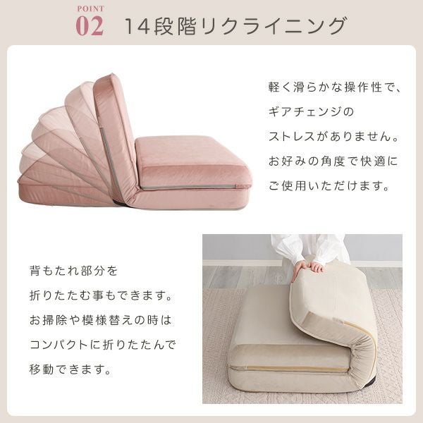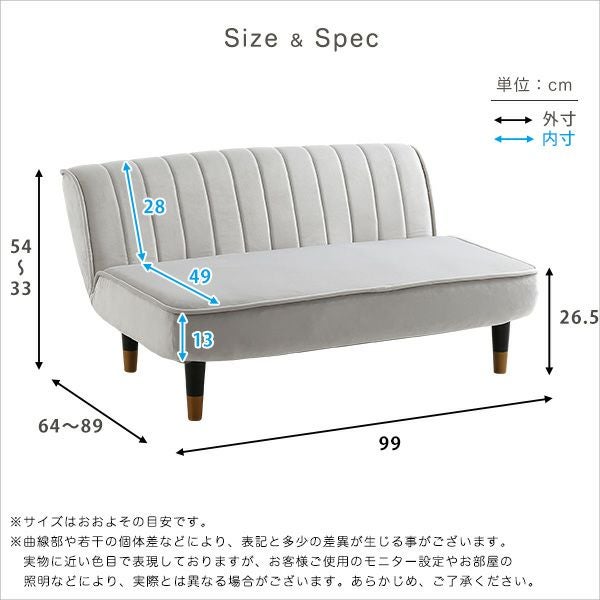 他の画像を見る かわいい コンパクト 小さい おしゃれ くすみカラー ソファ ローソファ 2人掛け 1.5人掛け 14段階 リクライニング ポケットコイル ベロア ベルベッド 高級感 大人かわいいインテリア ベロア調の脚付きローソファ Chammy -チャミー- [SH-07-OKLBS] ¥ 17,900 税込 お気に入りに登録する
