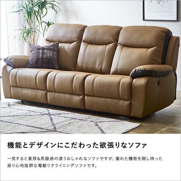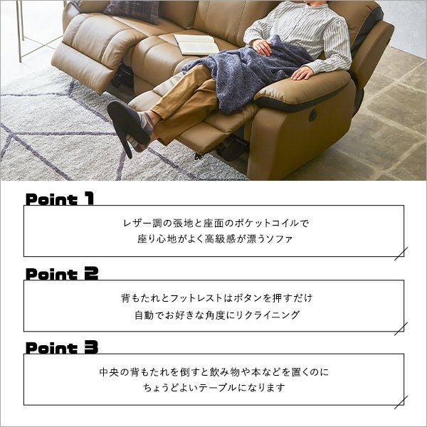 他の画像を見る 電動ソファ ソファ 一人掛け リクライニング リビング レザー フットレスト 3P ポケットコイル 両肘 北欧 モダン おしゃれ テーブル付き 抜群の座り心地!3人掛け電動リクライニングソファ[SH-24-ESL-3] ¥ 119,000 税込 お気に入りに登録する