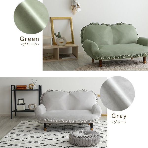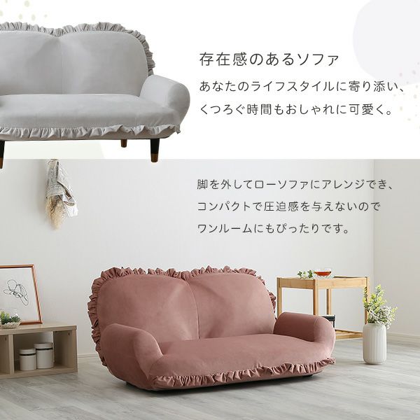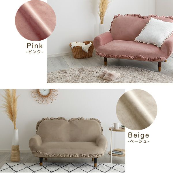 他の画像を見る フリル かわいい コンパクト 小さい おしゃれ くすみカラー ソファ 2人掛け ひじ掛け リクライニング ベロア ベルベッド 高級感 大人かわいいインテリア フリル付きベロアソファ 2人掛け Chammy -チャミー- [SH-07-OKBF-2] ¥ 19,900 税込 お気に入りに登録する