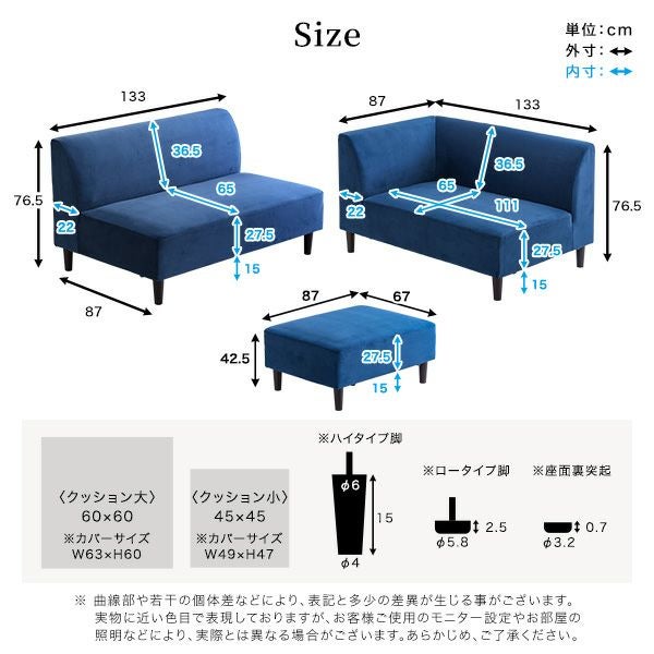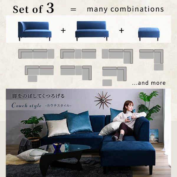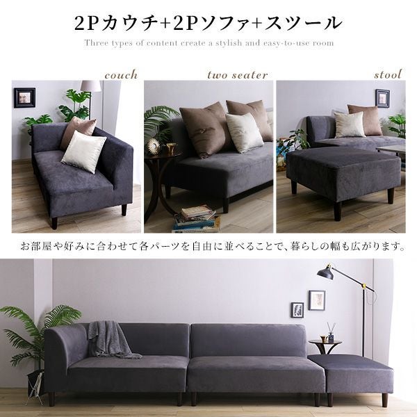 他の画像を見る カウチソファ ソファ スツール クッション付き ファブリック 撥水 汚れ 掃除簡単 ファミリー おしゃれ ロータイプ ハイタイプ ベロア 高級感 クッション付き 組み替え可能なベロアカウチソファ VELUURI ベルーリ [SH-27-NCS] ¥ 109,000 税込 お気に入りに登録する