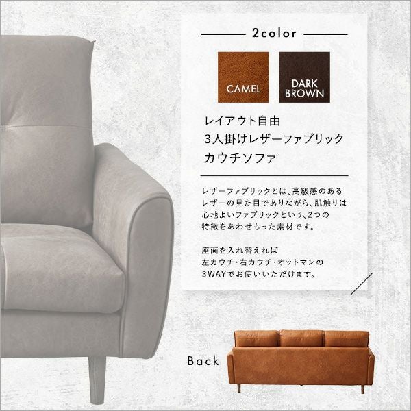 他の画像を見る カウチソファ 3人掛け レザー ファブリック ヴィンテージ オットマン 高級感 ブラウン キャメル 高さ13cm アンティーク レイアウト自由 3人掛け レザーファブリック カウチソファ Marcell-マーセル- [SH-24-CSS-3] ¥ 120,000 税込 お気に入りに登録する