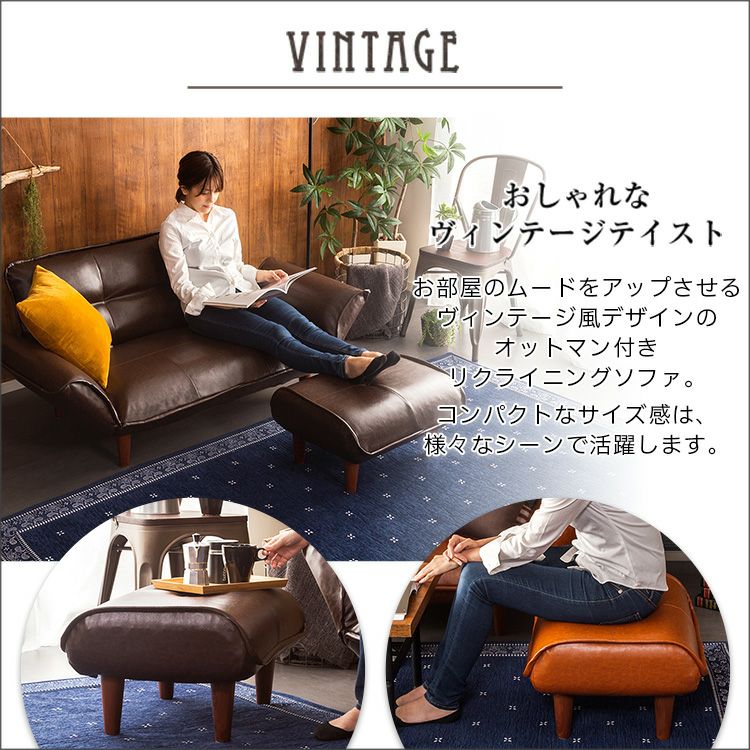 他の画像を見る インテリア ヴィンテージ ソファ オットマン カウチソファ ソファベッド スツール 2人掛け コンパクト ギア調整 ポケットコイル 日本製 木目調 脚 PVCレザー ヴィンテージカウチソファ オットマンセット 【LUKAS-ルーカス-】 [SH-07-VTCO-S] ¥ 28,900 税込 お気に入りに登録する