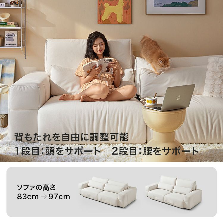 他の画像を見る 在庫切れ ファブリックソファ 2人掛け 背もたれ調節機能 羽毛混合クッション 撥水加工 耐摩耗性 ペット対応 毛が付きにくい ネックサポー 調整可能背もたれファブリックソファ 左1人掛け+右1人掛け [SH-LI-00949] ¥ 154,727 税込 お気に入りに登録する