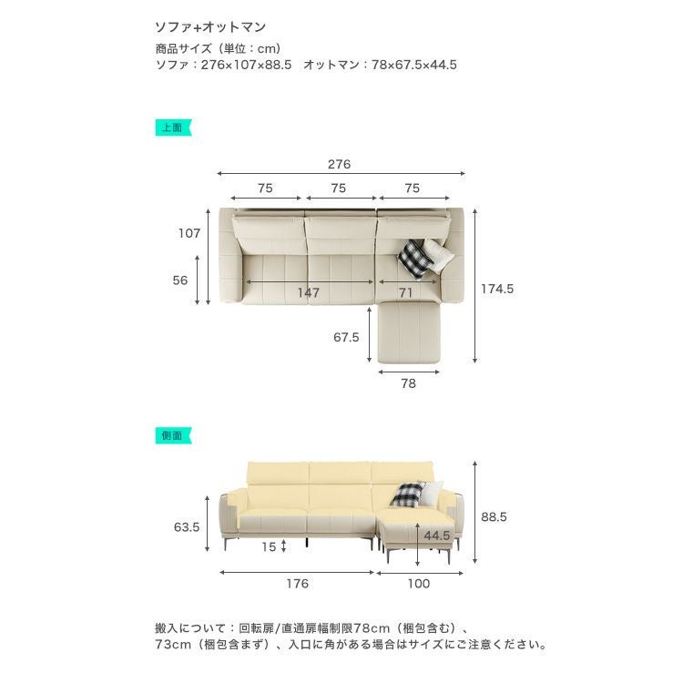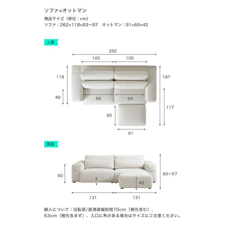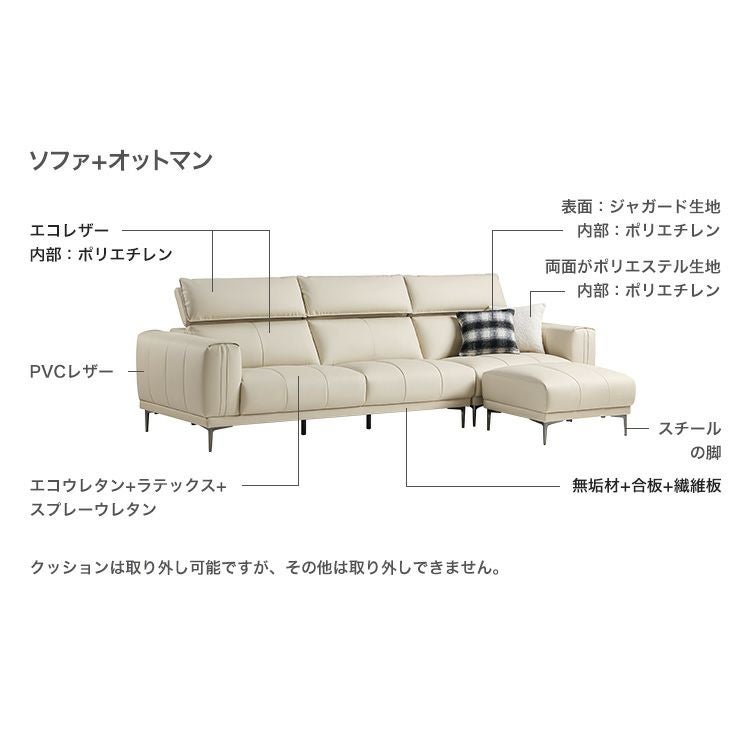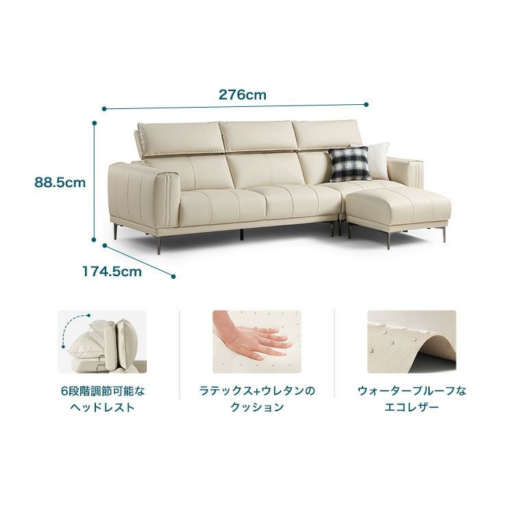 他の画像を見る 在庫切れ エコレザーソファ 4人掛け オットマン付き ヘッドレスト調節機能 ウォータープルーフ ラテックスクッション ウレタンクッショ 6段階ヘッドレスト付きエコレザー左1人掛け+右3人掛けソファ+オットマン [SH-LI-00998] ¥ 223,636 税込 お気に入りに登録する