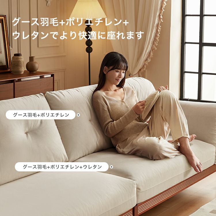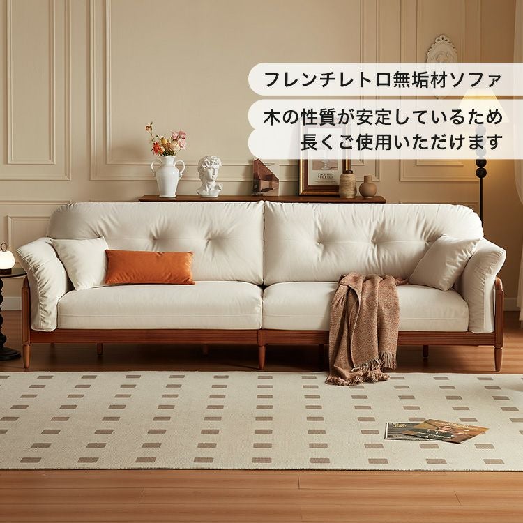 他の画像を見る 在庫切れ 3人掛けソファ 230cm 無垢材フレーム ラバーウッド クッション付き グース羽毛 ポリエチレン ウレタン 広々座面 フレンチレトロデ フレンチレトロ無垢材ソファ 230cm [SH-LI-00970] ¥ 127,181 税込 お気に入りに登録する
