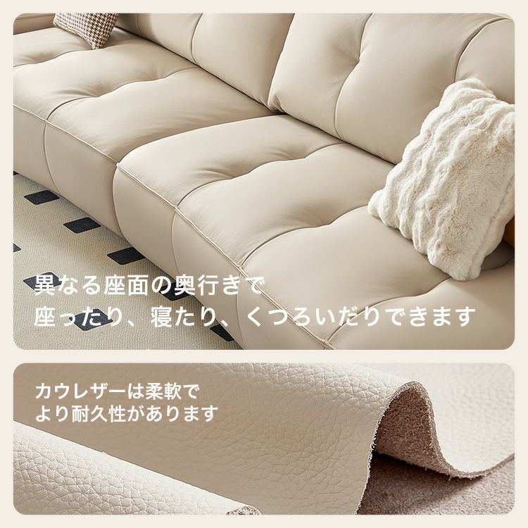 他の画像を見る 在庫切れ カウレザーソファ 4人掛け ラテックスウレタンクッション 羽毛混合クッション 快適な座り心地 耐久性 座る 寝る くつろぐ 高品 カウレザー 左2人掛け+右2人掛けソファ 280cm [SH-LI-01018] ¥ 184,545 税込 お気に入りに登録する