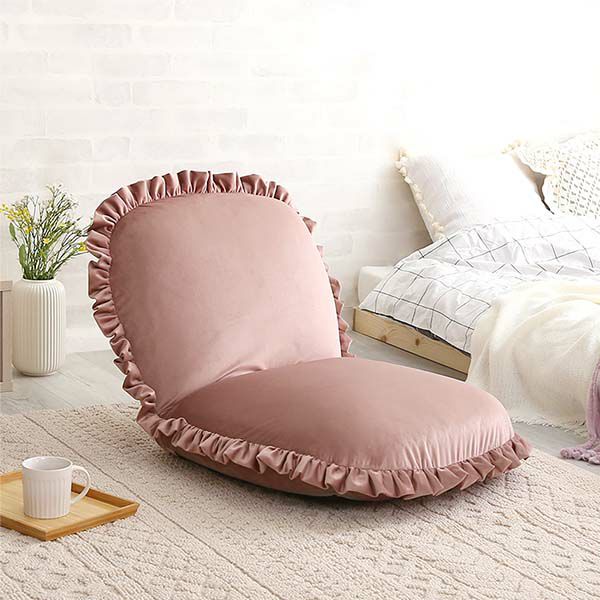 座椅子 ベロア ベルベット かわいい コンパクト 小さい フリル おしゃれ くすみカラー 椅子 イス チェア リクライニング ピンク グリーン ホワイト グレー ベージュ 大人かわいいインテリア ベロア座椅子 Chammy -チャミー- [SH-07-OKBF]