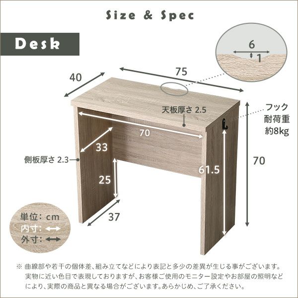 他の画像を見る シンプルデスク 学習デスク 勉強机 75幅 木目調 ワークスペース テレワーク コンパクト フック付き おしゃれ 在宅 パソコンデスク LULUTE-ルルテ- シンプルデスク75cm幅 [HT-DSK75] ¥ 7,990 税込 お気に入りに登録する