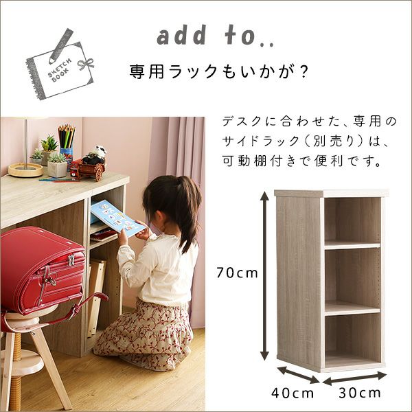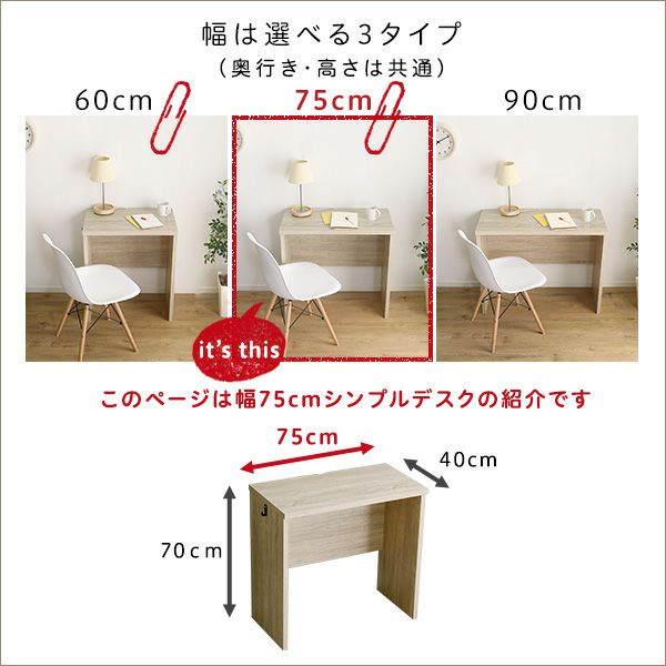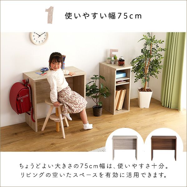 他の画像を見る シンプルデスク 学習デスク 勉強机 75幅 木目調 ワークスペース テレワーク コンパクト デスクセット 在宅 パソコンデスク ラック LULUTE-ルルテ- シンプルデスク75cm幅+サイドラック30cm幅セット [HT-DSK75SRK] ¥ 13,900 税込 お気に入りに登録する