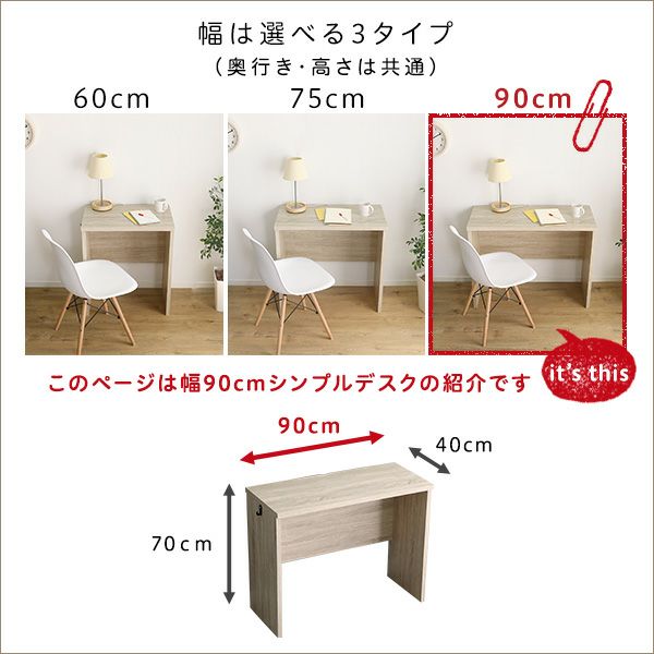 他の画像を見る シンプルデスク 学習デスク 勉強机 90幅 木目調 ワークスペース テレワーク コンパクト デスクセット 在宅 パソコンデスク ラック LULUTE-ルルテ- シンプルデスク90cm幅+サイドラック30cm幅セット [HT-DSK90SRK] ¥ 14,900 税込 お気に入りに登録する