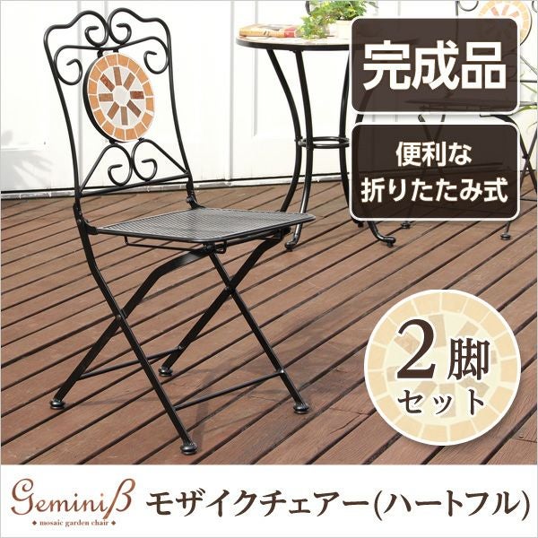 モザイクチェアー(ハートフル) 2脚セット【geminiβ-ジェミニβ-】(ガーデニング モザイクチェア)