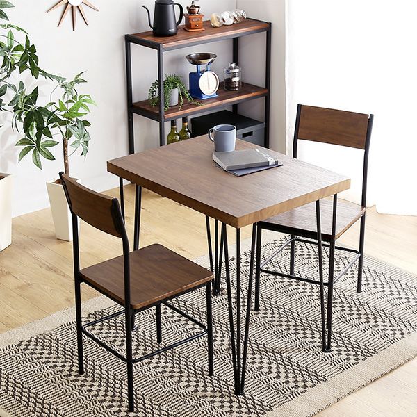 インテリア 背もたれダイニングテーブルセット テーブル チェア ヴィンテージ調 2人掛け スチール脚 オシャレ 3点セット コンパクト 木目 カフェ ヴィンテージ背もたれ付きダイニング3点セット[BRV-3]