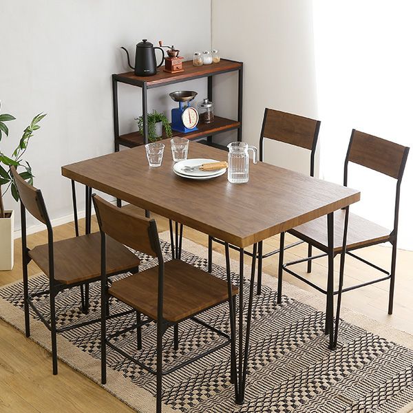 ヴィンテージ背もたれダイニングテーブルセット テーブル チェア ヴィンテージ調 4人掛け スチール脚 オシャレ 5点セット コンパクト 木目 カフェ ヴィンテージ背もたれ付きダイニング5点セット[BRV-5]