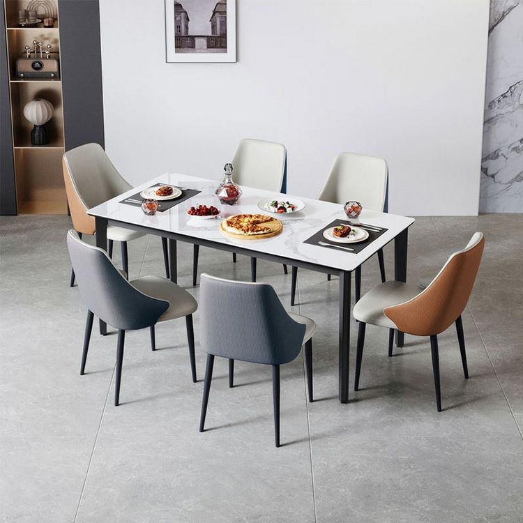 光沢天板 ダイニングテーブル 7点セット 140cm ダイニングチェア オレンジ ベージュ&ブルー スチール脚 耐久性 快適座面 モダンデザイン 光沢天板ダイニングテーブル&チェア 7点セット 140cm [SH-LI-00653]