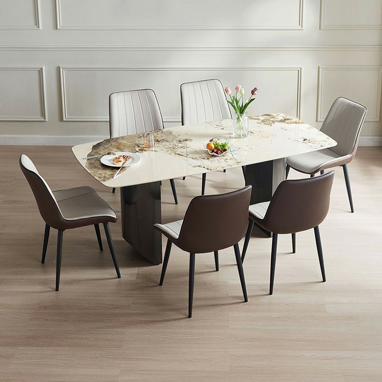 光沢天板 ダイニングテーブル 180cm スチール脚 ホワイトグレー ダイニングチェア ホワイトブラウン 広い座面 高温耐性 モダンデザイン 安定感 光沢天板ダイニングテーブル&チェア-ホワイト- 7点セット 180cm [SH-LI-01140]