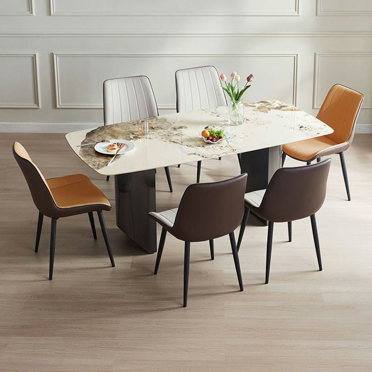 光沢天板 ダイニングテーブル 180cm スチール脚 ホワイトグレー ダイニングチェア ホワイトブラウン オレンジ モダンデザイン 高温耐性 安定感 ダイニングテーブル&チェア-ホワイト4脚&オレンジ2脚 - 7点セット 180cm [SH-LI-01144]