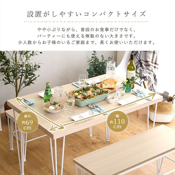 他の画像を見る ダイニングテーブル さわやか ホワイト アイアン テーブル チェア ベンチ 4人掛け 4点セット コンパクト さわやかなダイニング4点セット テーブル+椅子2脚+ベンチ1脚 [FRCB-4] ¥ 22,990 税込 お気に入りに登録する
