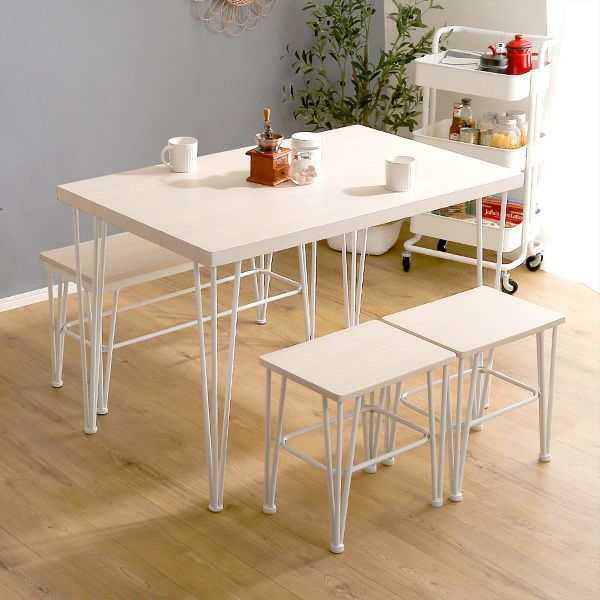 ダイニングテーブル さわやか ホワイト アイアン テーブル チェア ベンチ 4人掛け 4点セット コンパクト さわやかなダイニング4点セット テーブル+椅子2脚+ベンチ1脚 [FRCB-4]