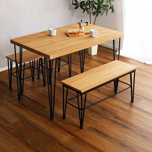 ヴィンテージ ダイニングテーブルセット テーブル ベンチ チェア ヴィンテージ調 4人掛け スチール脚 オシャレ 3点セット コンパクト 木目 カフェ 食卓テーブル 家族 モダン ヴィンテージダイニング4点セット テーブル+椅子2脚+ベンチ1脚 [VDCB-4]