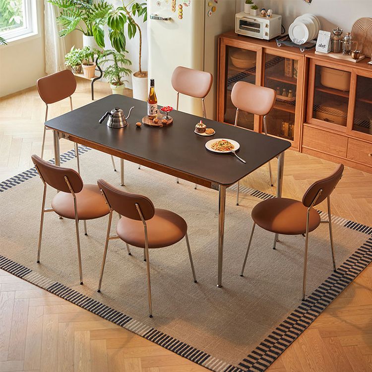 ダイニングテーブル 160cm ダイニングチェア 6脚セット ウォールナット調 ステンレス脚 マット天板 耐熱性 高級感 高さ調節可能 ウォールナット調ダイニングテーブル&チェア(ブラウン)7点セット 160cm [SH-LI-01081]