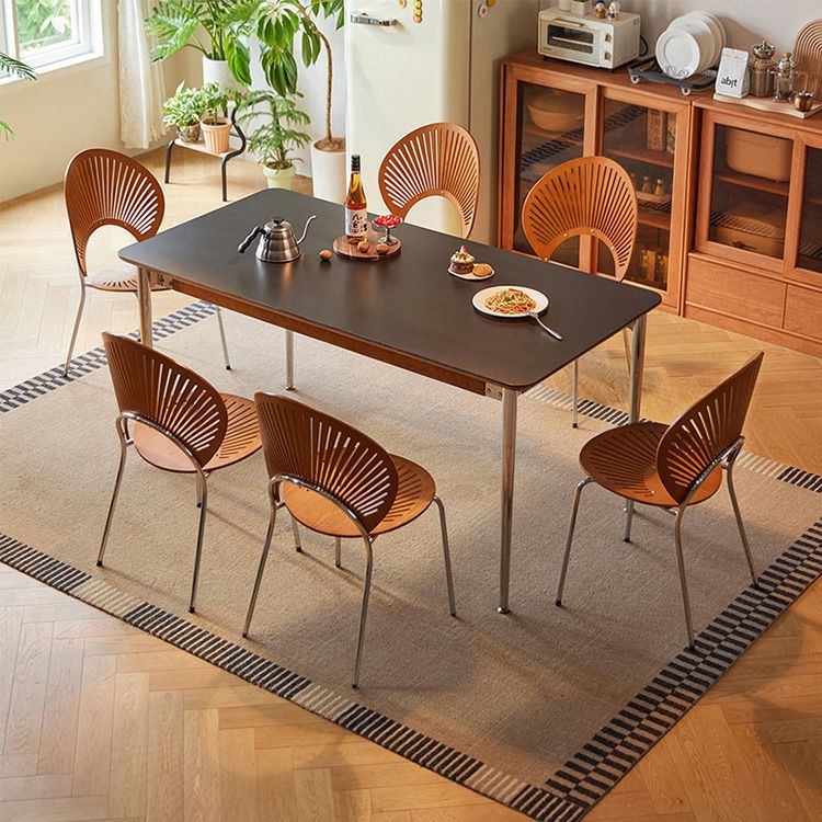 ダイニングテーブル 160cm シェルチェア 6脚セット ウォールナット調 ステンレス脚 バーチ合板 スチールフレーム マット天板 耐熱 ウォールナット調ダイニングテーブル&シェルチェア7点セット 160cm [SH-LI-01085]