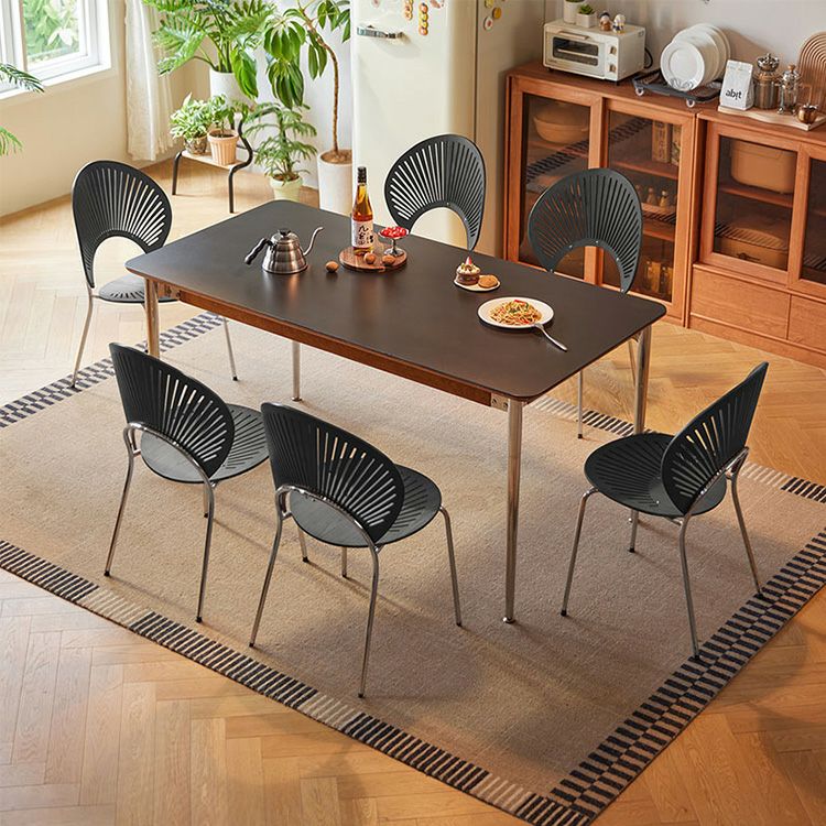ダイニングテーブル 140cm シェルチェア 6脚セット ウォールナット調 ステンレス脚 バーチ合板 スチールフレーム マット天板 耐熱 ウォールナット調ダイニングテーブル&シェルチェア(ブラック)7点セット 140cm [SH-LI-01087]