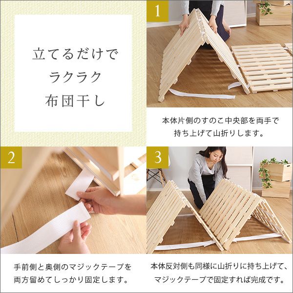 他の画像を見る 家具 インテリア ベッド マットレス ベッド用すのこマット すのこ 二つ折り すのこベッド セミダブル 湿気 ヒノキ 四つ折りタイプすのこ 折りたたみ airrela-エアリラ- [セミダブル] すのこベッド四つ折り式 檜仕様 [ARL4-SD] ¥ 10,990 税込 お気に入りに登録する