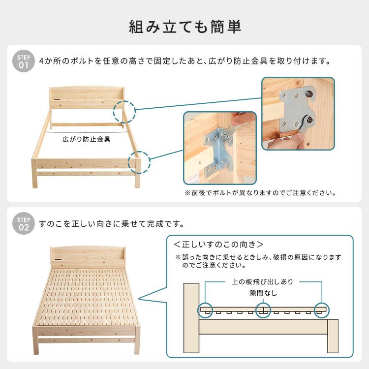 他の画像を見る ベッド ひのき ヒノキベッド ダブル 日本製 国産 国産ひのき すのこ 高品質 コンセント 棚 無塗装 頑丈 通気性 リラックス効果 抗菌 防虫 高さ調節 SDGs 棚コンセント付き国産ひのきベッド ノーマルすのこタイプ【HINOKA-ヒノカ-】(ダブル) [SH-30-JPGG-D] ¥ 62,900 税込 お気に入りに登録する