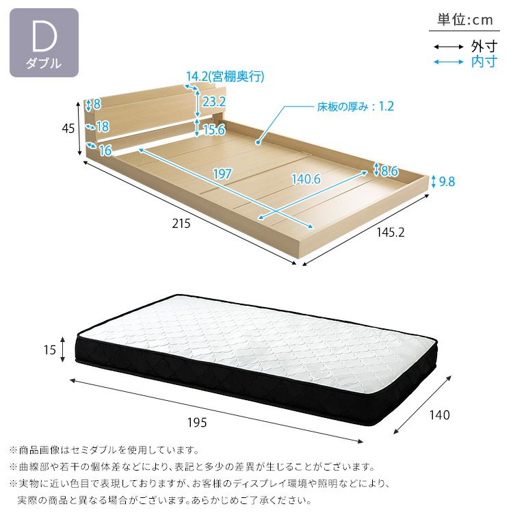 他の画像を見る ベッド ローベッド フロアベッド 木製ベッド ロータイプ 低床 コンセント2口 マットレスセット マットレス付き 抗菌 防臭 宮棚 タブレット置き ボンネル デザインフロアベッド ボンネルコイルマットレスセット(ダブル) [MOD-BRM-D] ¥ 40,900 税込 お気に入りに登録する