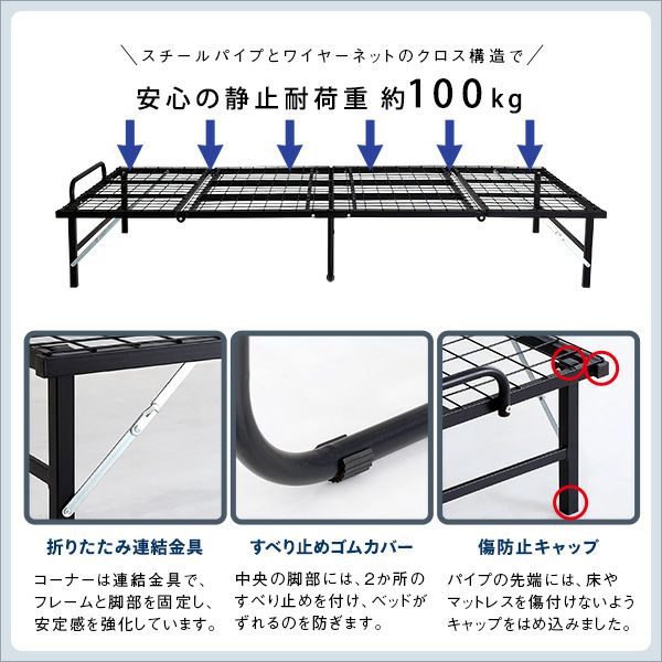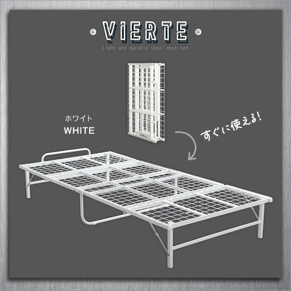 他の画像を見る 折りたたみパイプベッド 4つ折り 完成品 シングル スチール製 通気性 床板 メッシュ シンプル 耐荷重100kg コンパクト ベッド下収納 4つ折り 折りたたみパイプベッド Vierte-フィルテ- [HT-FPB] ¥ 12,900 税込 お気に入りに登録する