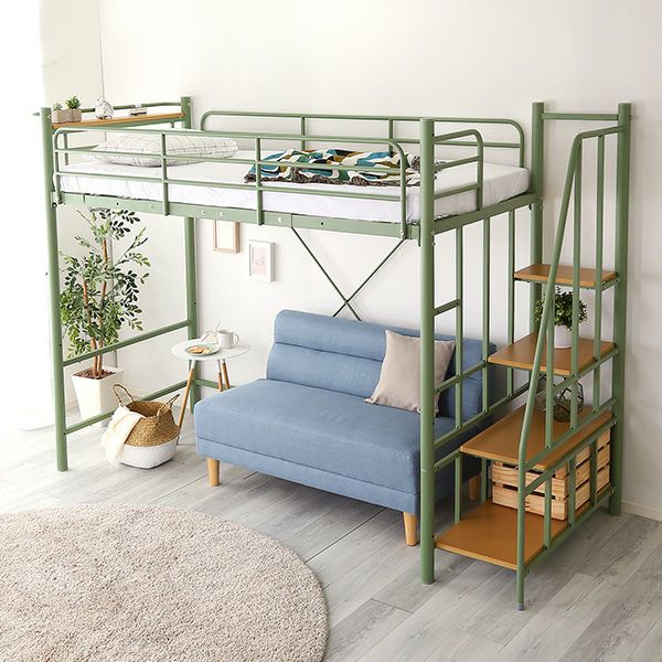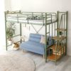 北欧 ロフトベッド シングル 階段付き 2段階高さ調整 ハイタイプ ミドルタイプ 宮棚 2口コンセント 手すり 静止耐荷重120kg 北欧インテリア 階段付き パイプロフトベッド Levata-レヴァタ- [HOHT70-102]
