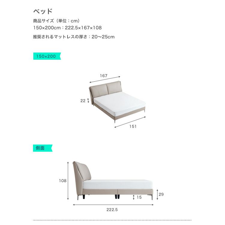 他の画像を見る 在庫切れ ベッド カウレザー スチール脚 無垢材フレーム グース羽毛 クッション性 耐久性 高級感 通気性 モダンデザイン 150×200cm カウレザースチール脚ベッド 150×200cm ワイドダブル [SH-LI-00486] ¥ 108,990 税込 お気に入りに登録する