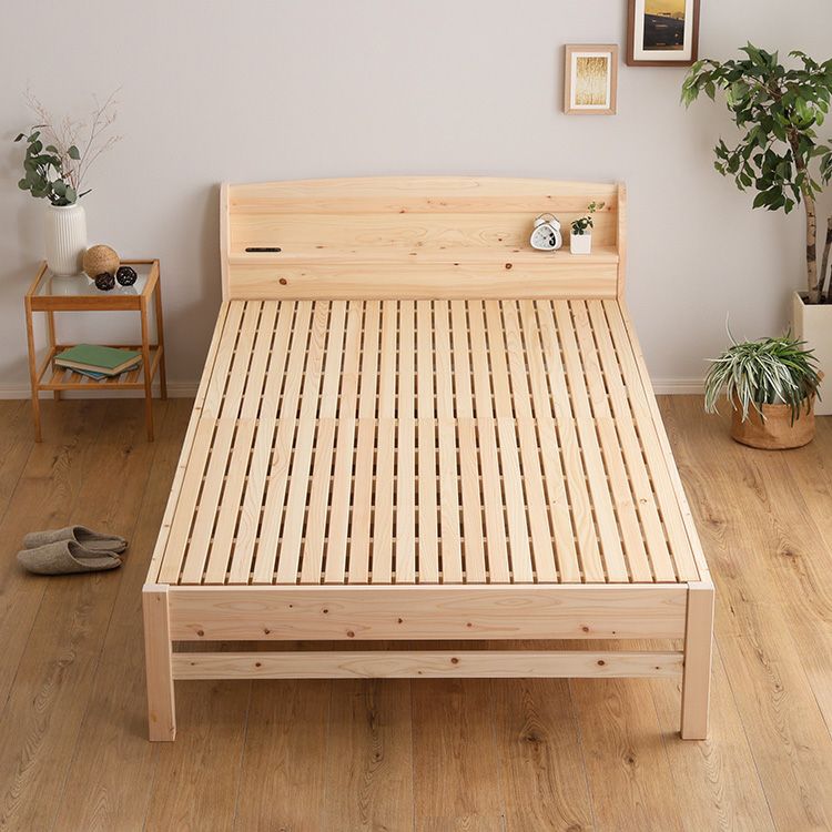 ベッド ひのき ヒノキベッド セミダブル 日本製 国産 国産ひのき すのこ 高品質 コンセント 棚 無塗装 頑丈 通気性 リラックス効果 抗菌 防虫 高さ調節 SDGs 棚コンセント付き国産ひのきベッド 繊細すのこタイプ【HINOKA-ヒノカ-】(セミダブル) [SH-30-JPHH-SD]