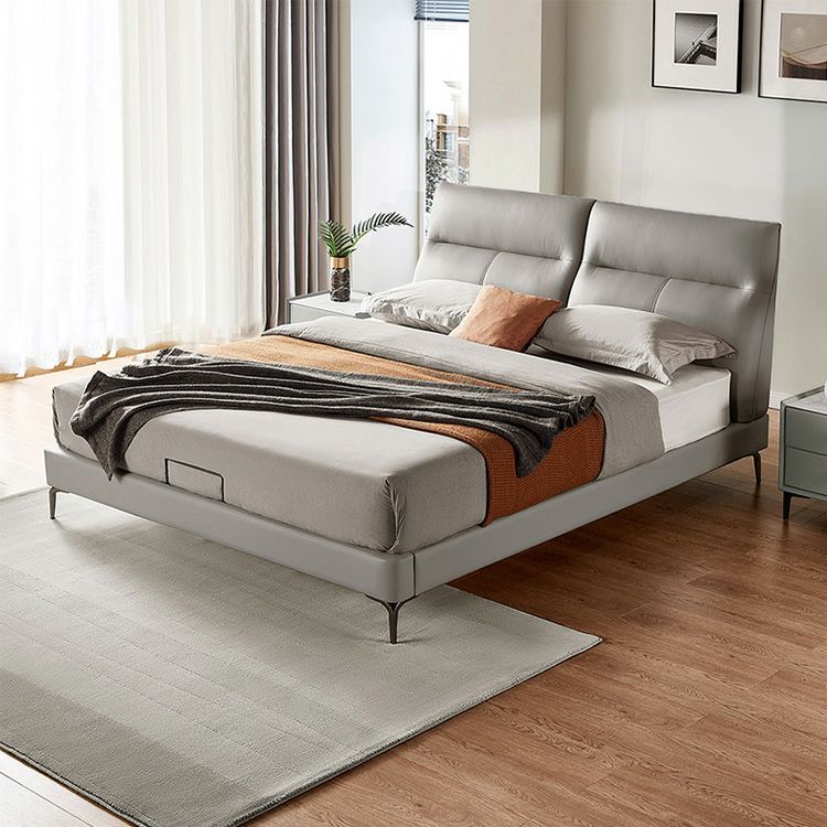 本革 無垢材 背もたれ 人間工学 金属脚 柔らかいウレタン 高弾力 快適サポート 掃除が簡単 グレー 150cm ダブル クイーン カウレザー 無垢材すのこベッド 150cm幅 [SH-LI-00136]