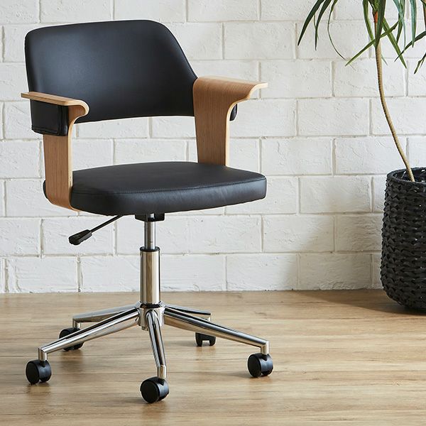 デスクチェア 1脚 おしゃれ ヴィンテージ 椅子 イス レザー ウッド 木 合皮 チェア モダン PCデスク テレワーク シンプル 回転式 昇降式 ガス圧昇降 キャスター 鉄脚 チェア 曲線が美しいデスクチェア[SH-23-KDW]
