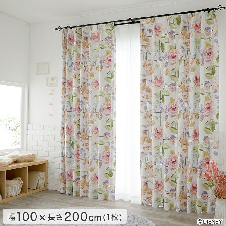 ドレープカーテン 100×200cm ディズニー カーテン レース 洗える 1枚入 おしゃれ ウォッシャブル リビング DISNEY/ディズニー ドレープカーテン 100×200cm×1枚【MICKEY/Rose grid ミッキー/ローズグリッド】 [SH-26-DMR200]