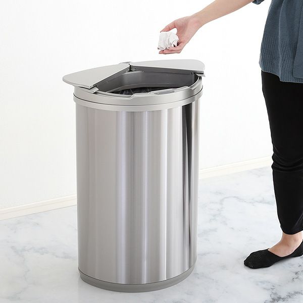 自動開閉ゴミ箱 ダストボックス 横開き ステンレス センサー感知 47L 大容量 ゴミ袋 電池式 ニオイ漏れなし 汚れに強い 手動開閉 横開きステンレス自動開閉ゴミ箱 arco-アルコ- [ARCO]