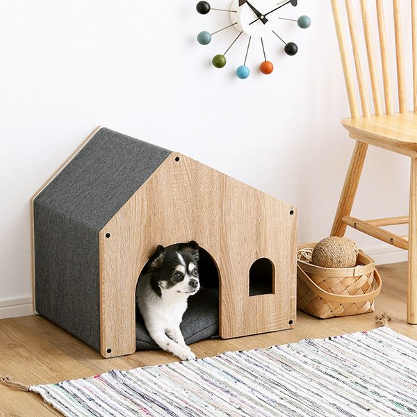 ペットハウス ペットベット 犬 猫 ペット クッション付き 屋根付き 天然木 木製 かわいい 収納 ペットハウス クッション付き 天然木製[SH-01-PHS]