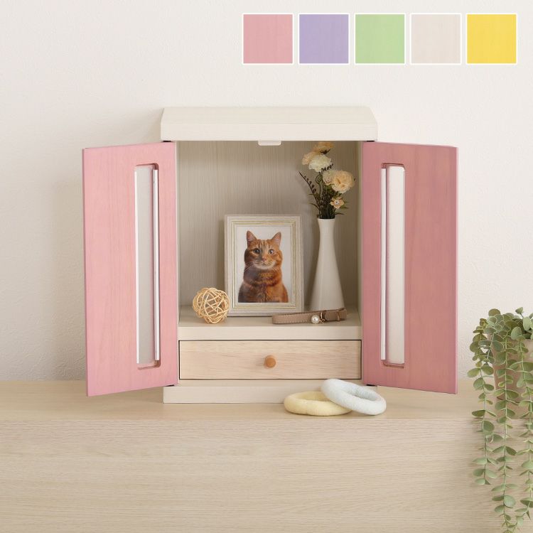 国産 日本製 ペット 仏壇 カラー 手作り 犬 猫 うさぎ 供養 木製 骨壷ケース メモリアルボックス 入れ物 ミニ 思い出 家族 ペットとの思い出をいつまでも 優しいカラーのコンパクト仏壇 [SH-08-NZU]